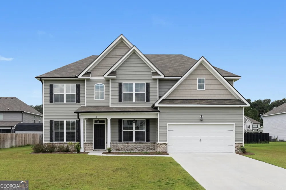 Welcome to Mossy Hollow! The Faircloth Homes 3450 floor plan offers the perfect blend of timeless elegance and modern comfort. The main level opens with a formal dining room accented by a coffered ceiling, a private study ideal for work or relaxation, and a spacious great room with a cozy fireplace. Luxury vinyl plank flooring flows seamlessly throughout, leading to a guest or in-law suite complete with a full bath. At the heart of the home, the gourmet kitchen stands out with an oversized island, granite countertops, walk-in pantry, double ovens, built-in microwave, and a ceramic cooktop-designed for both everyday living and entertaining. Upstairs, a versatile bonus room offers endless options for a theater, playroom, or lounge. Four additional bedrooms include a deluxe owner's suite, thoughtfully designed with a private sitting area, spa-inspired bath featuring a garden tub, walk-in shower, dual vanities, and a spacious walk-in closet. This home delivers both beauty and functionality, making it an exceptional opportunity. Don't miss your chance to call it yours!