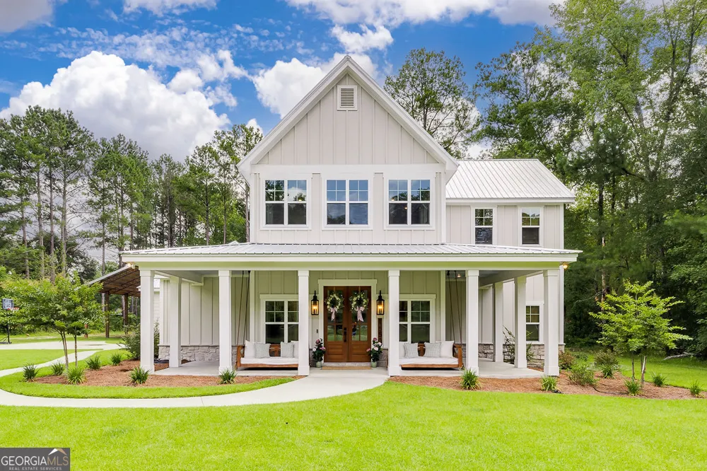 "A Honey Of A Farmhouse" - Like New Resale on 5 Acres in Effingham County! This exceptional custom-built home by Cypress Customs LLC is a rare opportunity to own a barely-lived-in modern farmhouse retreat, originally completed with meticulous attention to detail. Nestled on 5 private acres, this showstopping residence offers the perfect blend of upscale finishes and timeless character. Designed with an open-concept floor plan ideal for entertaining, the home features a dramatic two-story wood-burning fireplace with a stone surround, wood beams, and high-end LVP flooring throughout. The gourmet kitchen impresses with custom cabinetry, quartz countertops, a classic white Kohler farmhouse sink, and premium appliances. Craftsmanship shines through in the custom trim package, antique-style touches like a transom-topped laundry room door, and unique architectural elements reclaimed from the original early 1900s home once on the property. These include exposed antique beams, original interior doors, reclaimed brick accents in the powder room, and charming wall-mounted cast iron sinks. Modern conveniences like energy-efficient spray foam insulation pair seamlessly with rustic elegance. The result is a home that feels brand new but carries a sense of history and warmth that new construction simply can't replicate. Truly one-of-a-kind in Effingham County-this luxury farmhouse offers style, space, and serenity, just waiting for its next chapter. Schedule your private showing today-this gem won't last long!